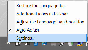 Find the icon on the right side of your taskbar that shows which language you have enabled at the moment. Right click it and choose Settings.