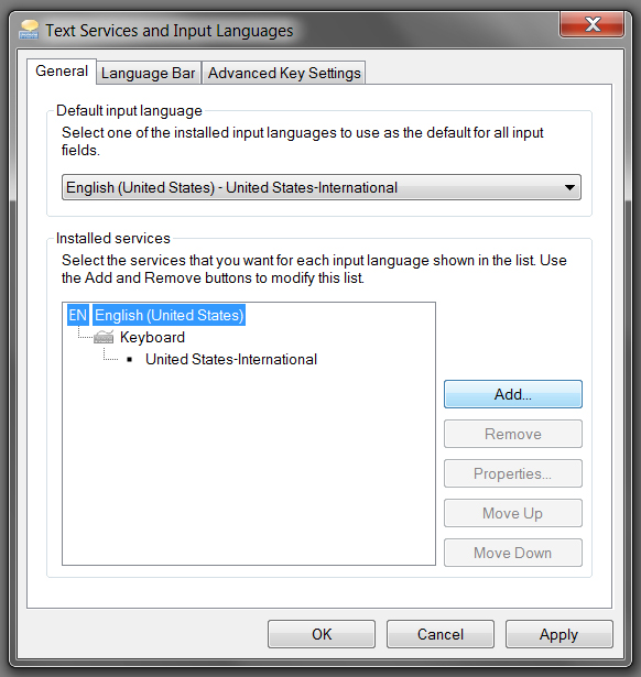 (If you are unable to find it, go to Control Panel -> Region and Language, on the Keyboards and Languages tab, click Change keyboards.)